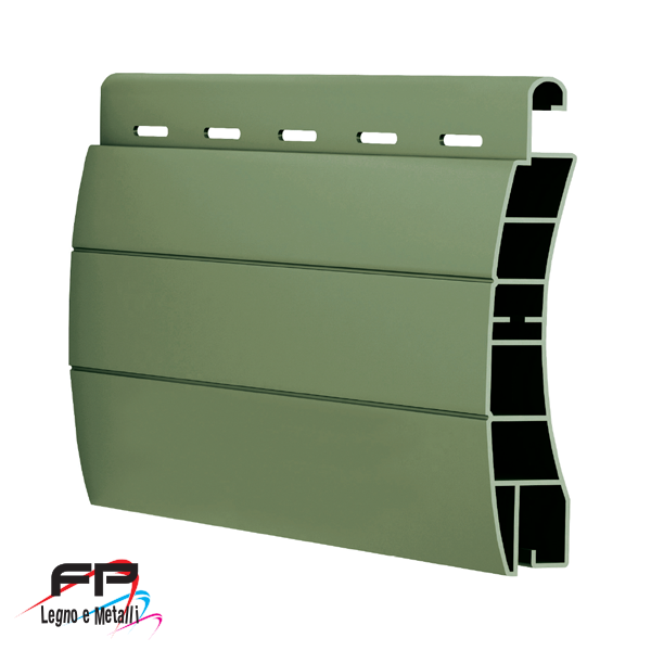 L’avvolgibile in pvc Torino (peso specifico standard di circa kg. 4,000/mq) è realizzato con stecche auto-aggancianti (a doppia parete e con intersezioni di irrigidimento interni) che misurano 13 mm di base e 55 mm di altezza.