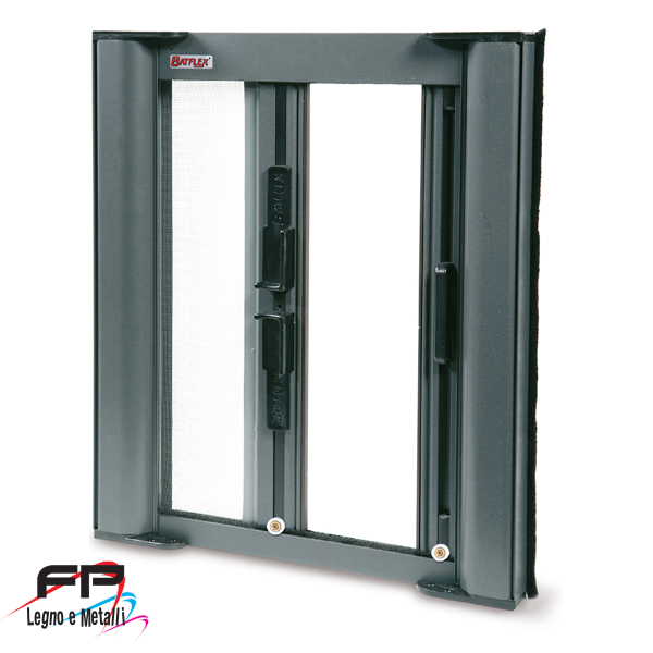 Zanzariera con ingombro di 42 mm a scorrimento laterale con doppia anta di apertura adatta per porte e finestre di grandi dimensioni, con la possibilità di bloccare una delle due ante in qualsiasi punto. Dotata di cuscinetto a sfera di scorrimento e clips per consentire una installazione pratica e veloce. Disponibile con rete grigia, a strisce, filtranti e oscuranti. Su richiesta come optional può essere dotata di rallentatore che consente al telo di riavvolgersi lentamente.