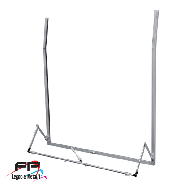 Cerniere e angoli di raccordo in nylon nero. Bracci in alluminio anodizzato. Traverso 30 x 18.