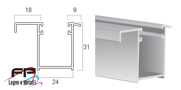 Guida in alluminio estruso A31 31 x 24 mm