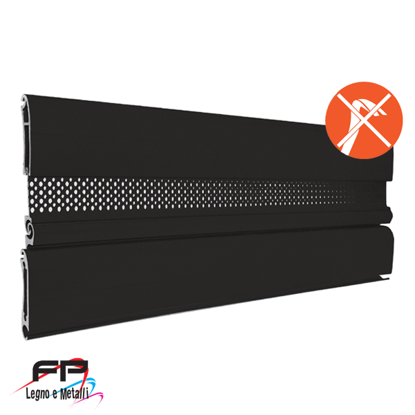 Mostra, infatti, la presenza di più profili in estruso che uniti all’aggancio detto ad “S” permettono l’attivazione del sistema autobloccante, in grado di proteggere dalle intrusioni e dai tentativi di sollevamento dall’esterno.
