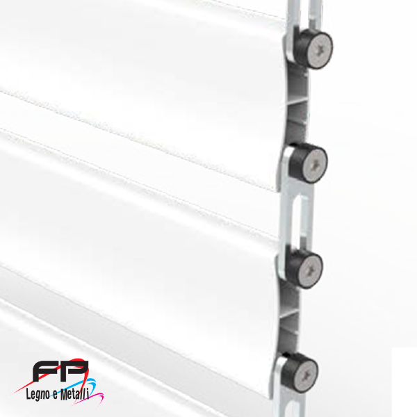 Le stecche, realizzate con un profilo estruso pesante in alluminio, sono collegate tra loro per mezzo di bielle in acciaio antistrappo. La distanza tra una stecca e l’altra varia a seconda della propria preferenza estetica (da 1,7 a 5,5 cm).